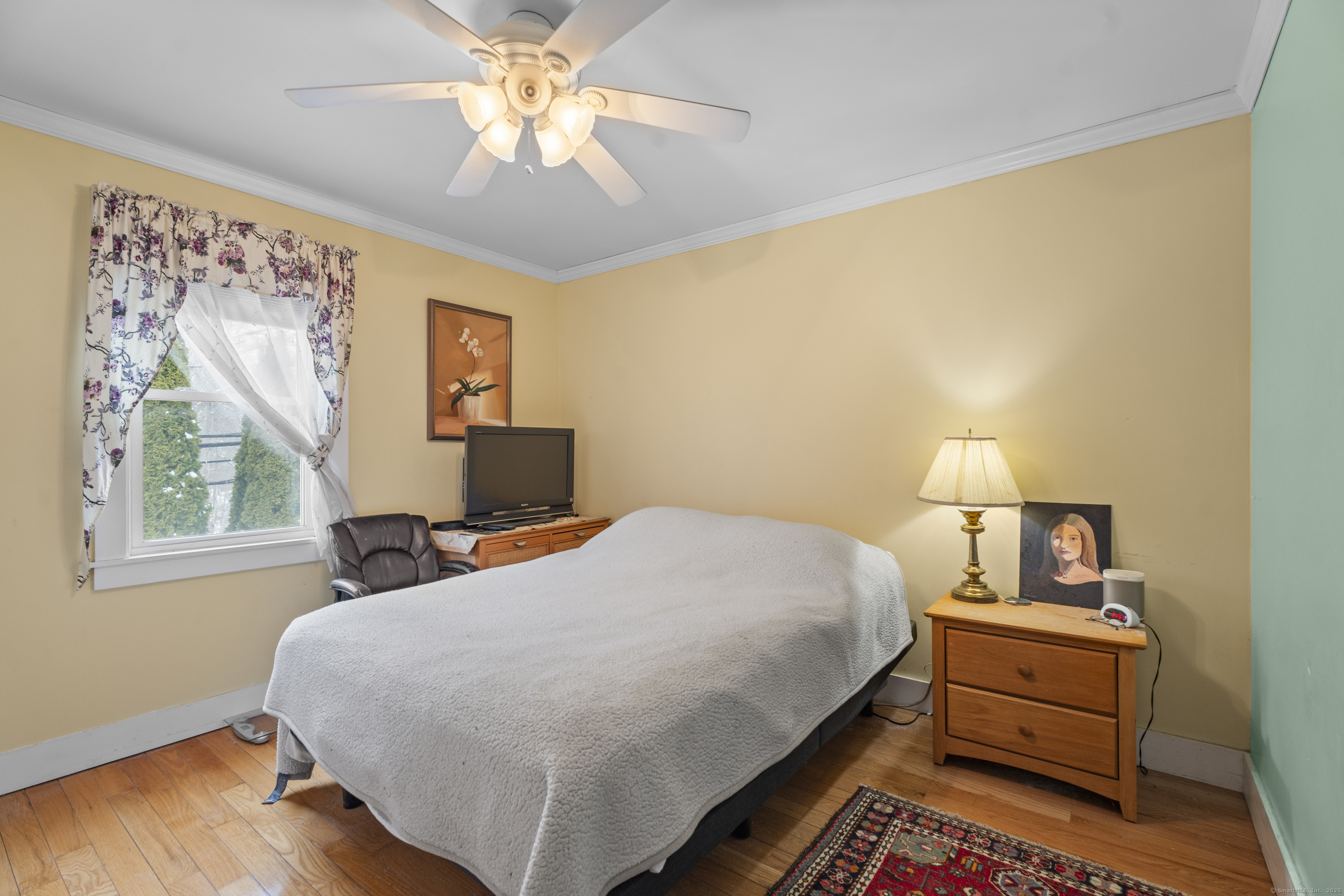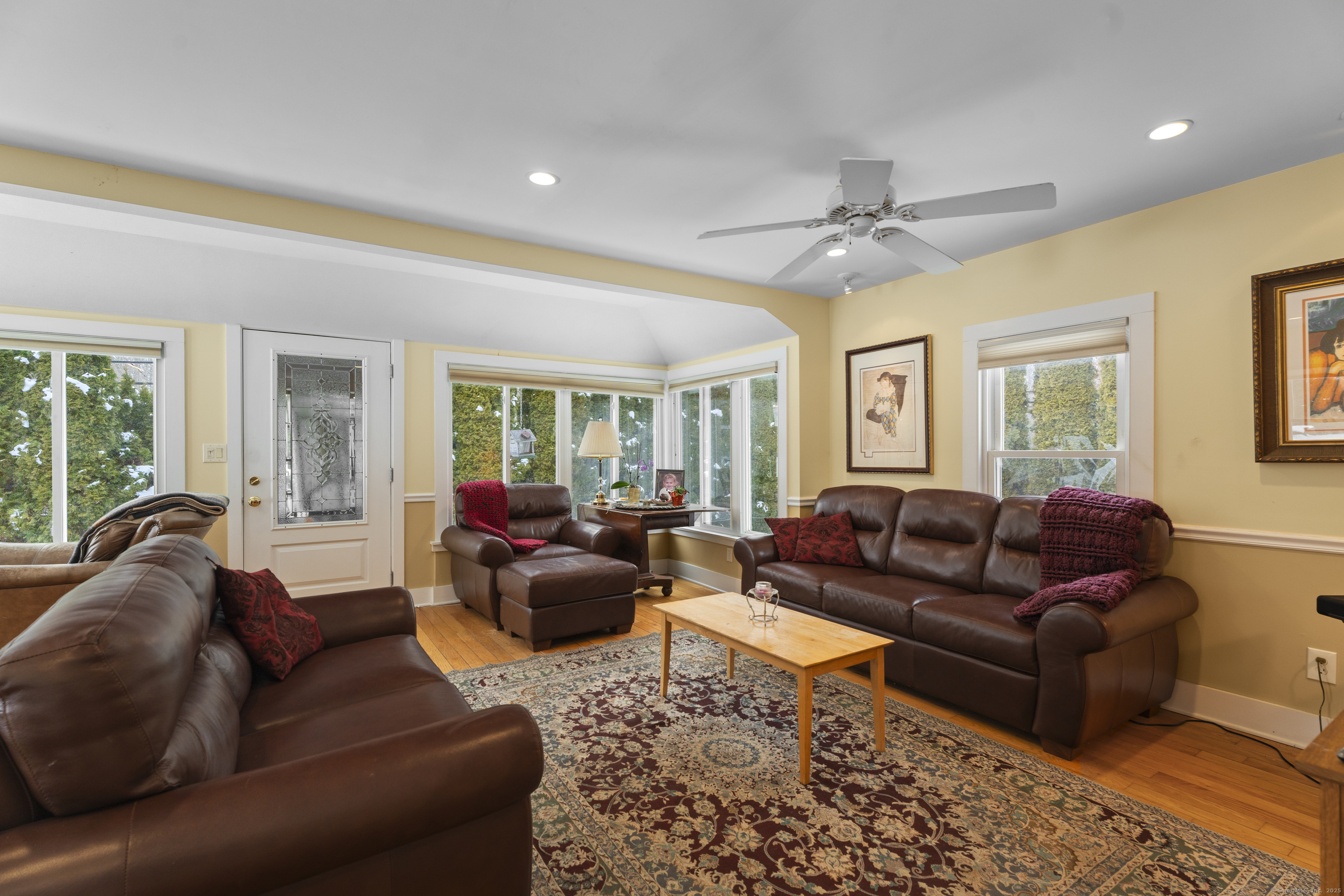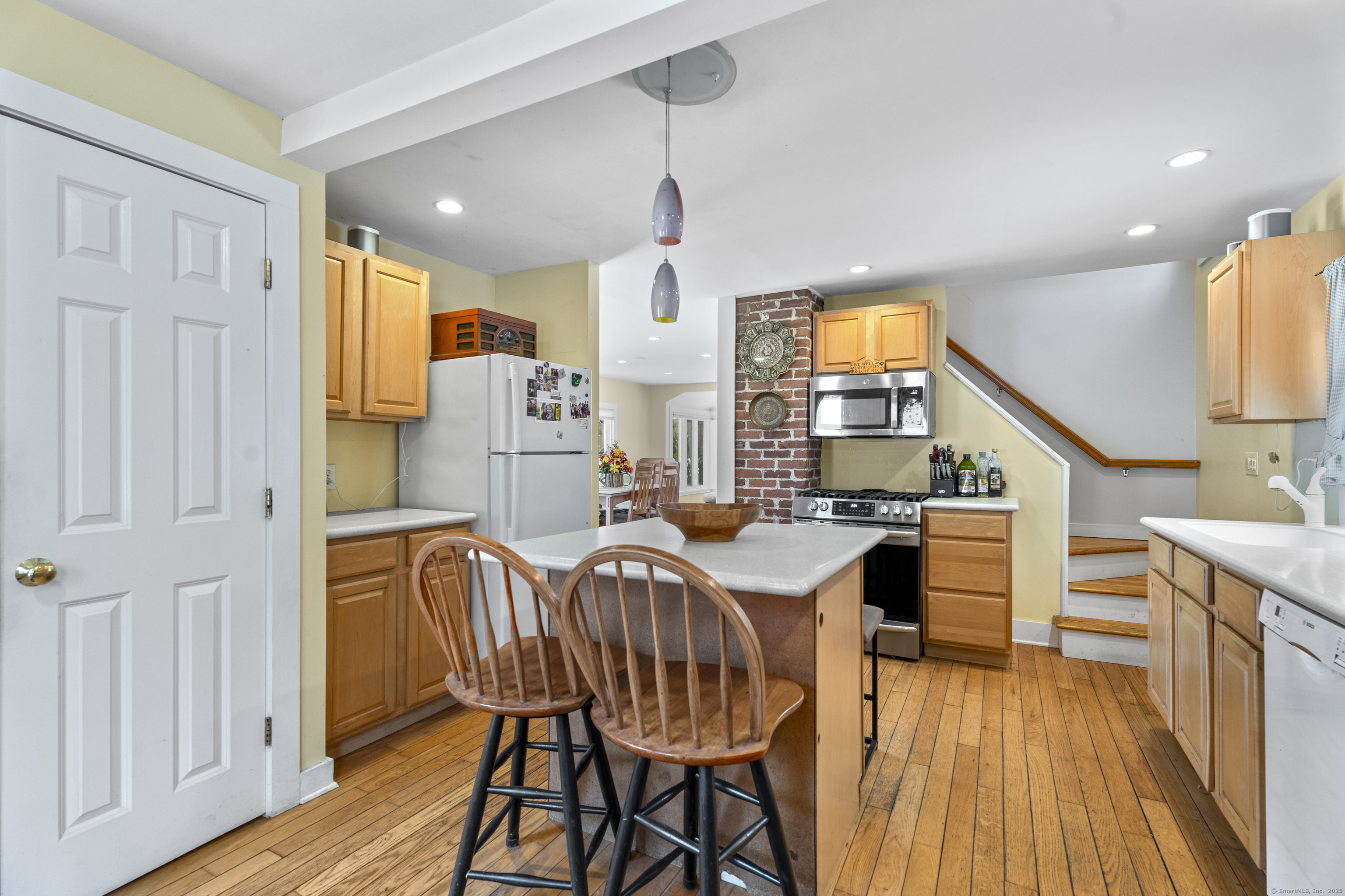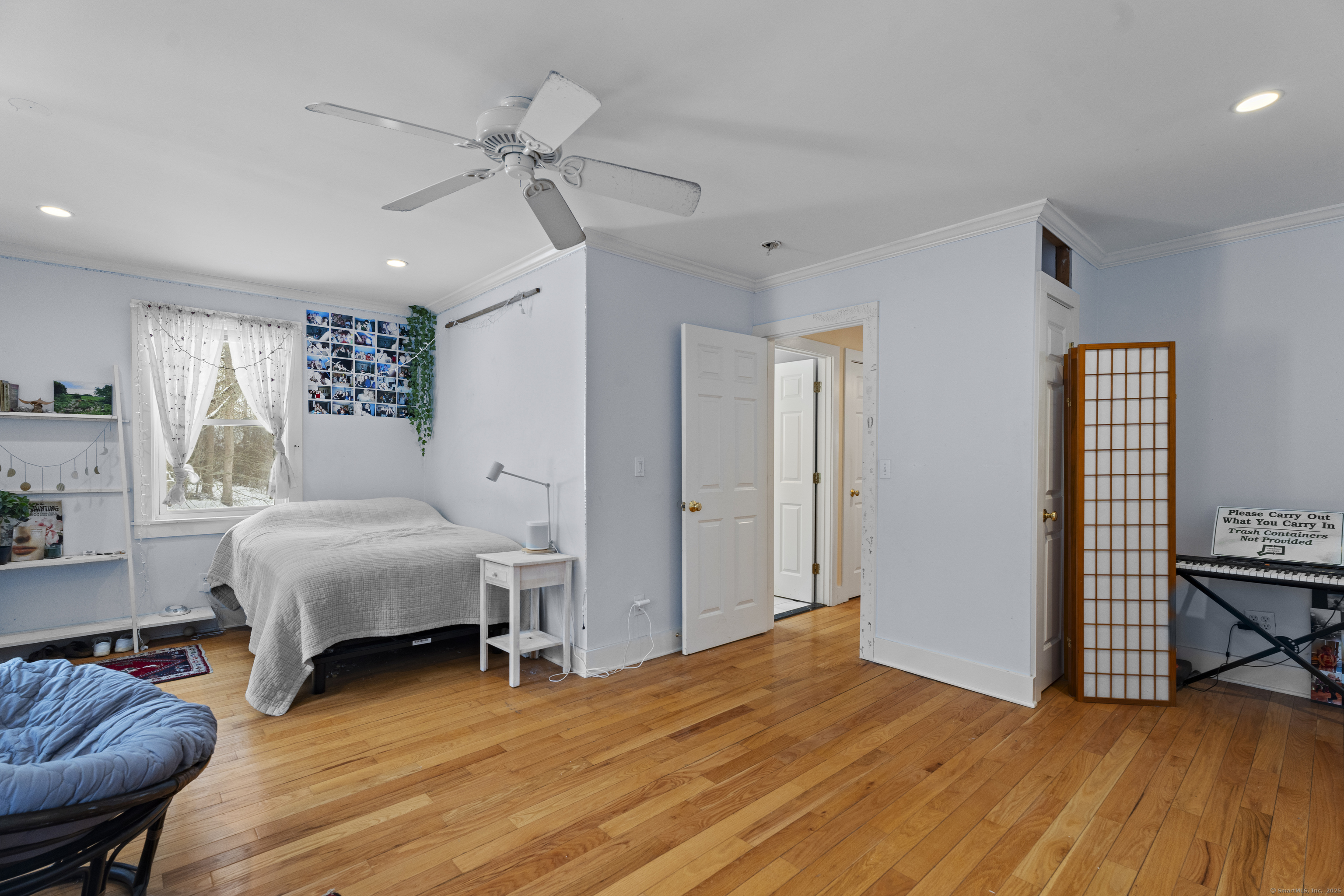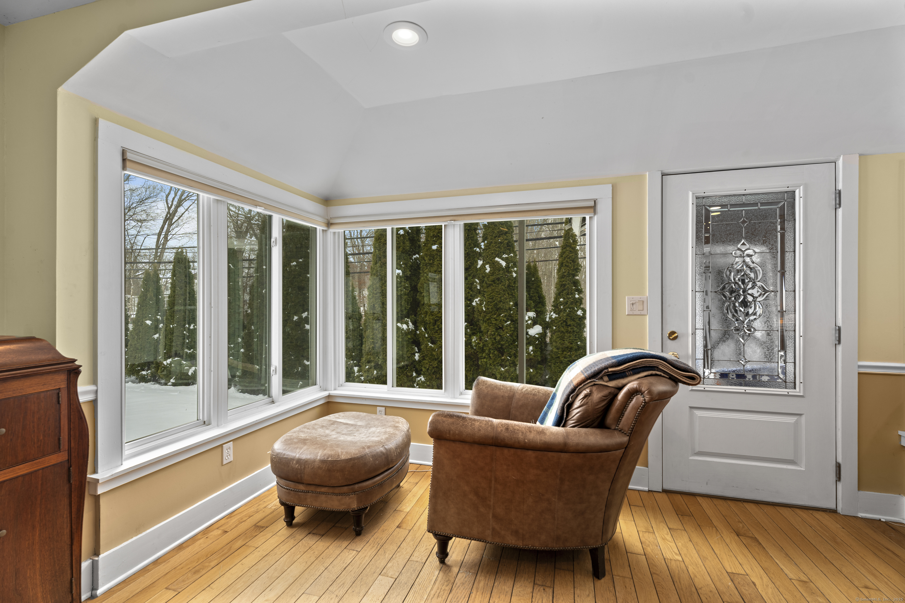 Welcome to this 3-bedroom home, ideally located in the heart of Madison-close to everything you need! As you enter, you are greeted by an open floor plan with hardwood floors throughout. The kitchen features a gas stove and center island and flows effortlessly into the dining area, which boasts built-in cabinetry perfect for storing your entertaining essentials. The family room, bathed in natural light thanks to its walls of windows surrounding the front door vestibule, creates a warm, inviting space. Sliding doors lead out to a low-maintenance Trex deck and hot tub, perfect for relaxing or entertaining. The main level also includes a convenient powder room and laundry area for added practicality. Upstairs, you'll find three comfortable bedrooms, each offering plenty of space, as well as a full bathroom complete with a soft-jetted air tub and separate tiled shower-ideal for unwinding after a long day. This home is equipped with natural gas heating, ensuring comfort and efficiency year-round. Additionally, with solar panels installed on a roof that is only 2 years old, this home offers enhanced energy efficiency. Set on a generous 1.5-acre corner lot, the property offers incredible potential, with a privacy fence and mature perennial trees that create a tranquil, park-like atmosphere. Additionally, an outbuilding on the property provides ample storage, and the driveway off Hunter's Trail offers easy access. Just a minute from I-95, this location is a commuter's dream.