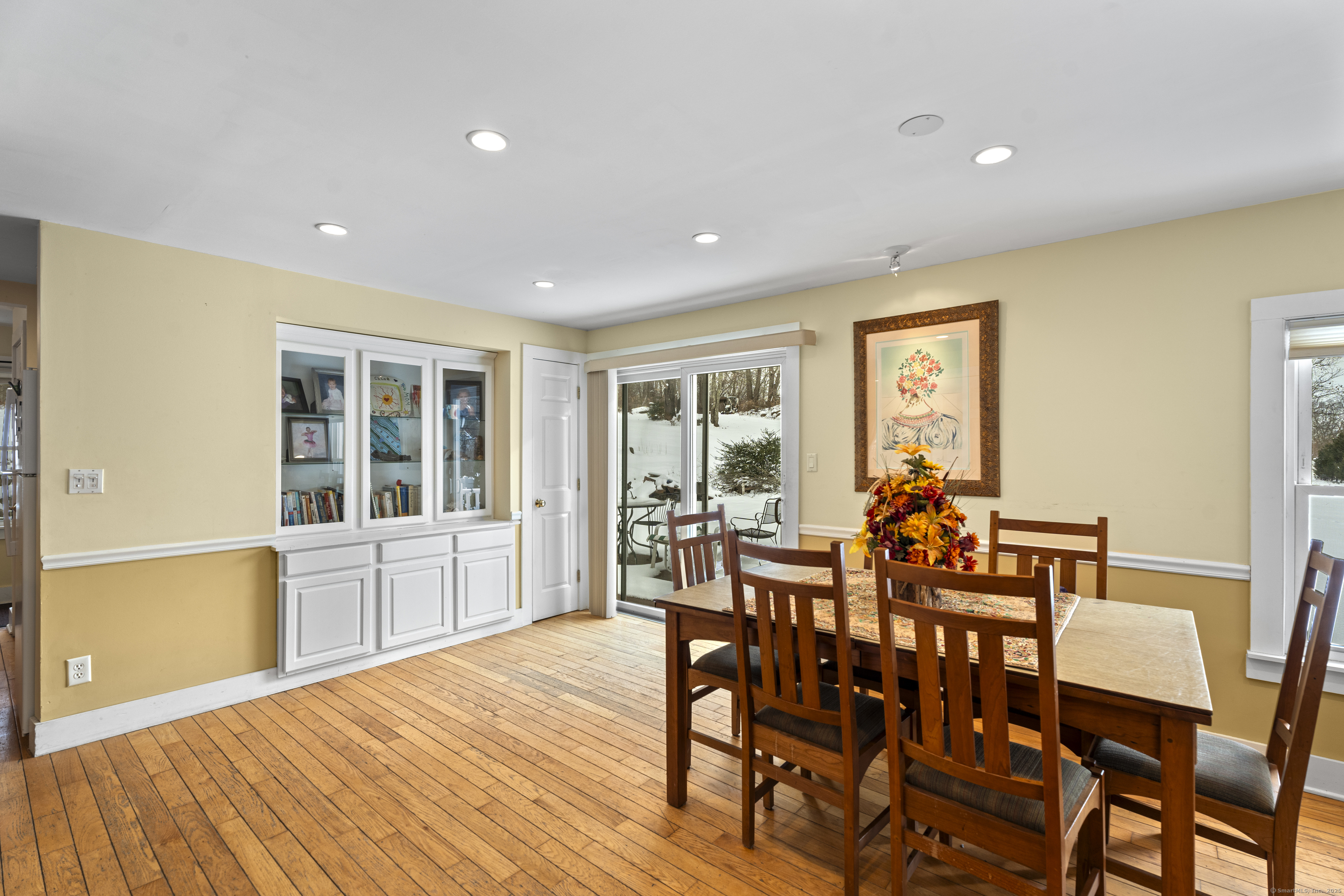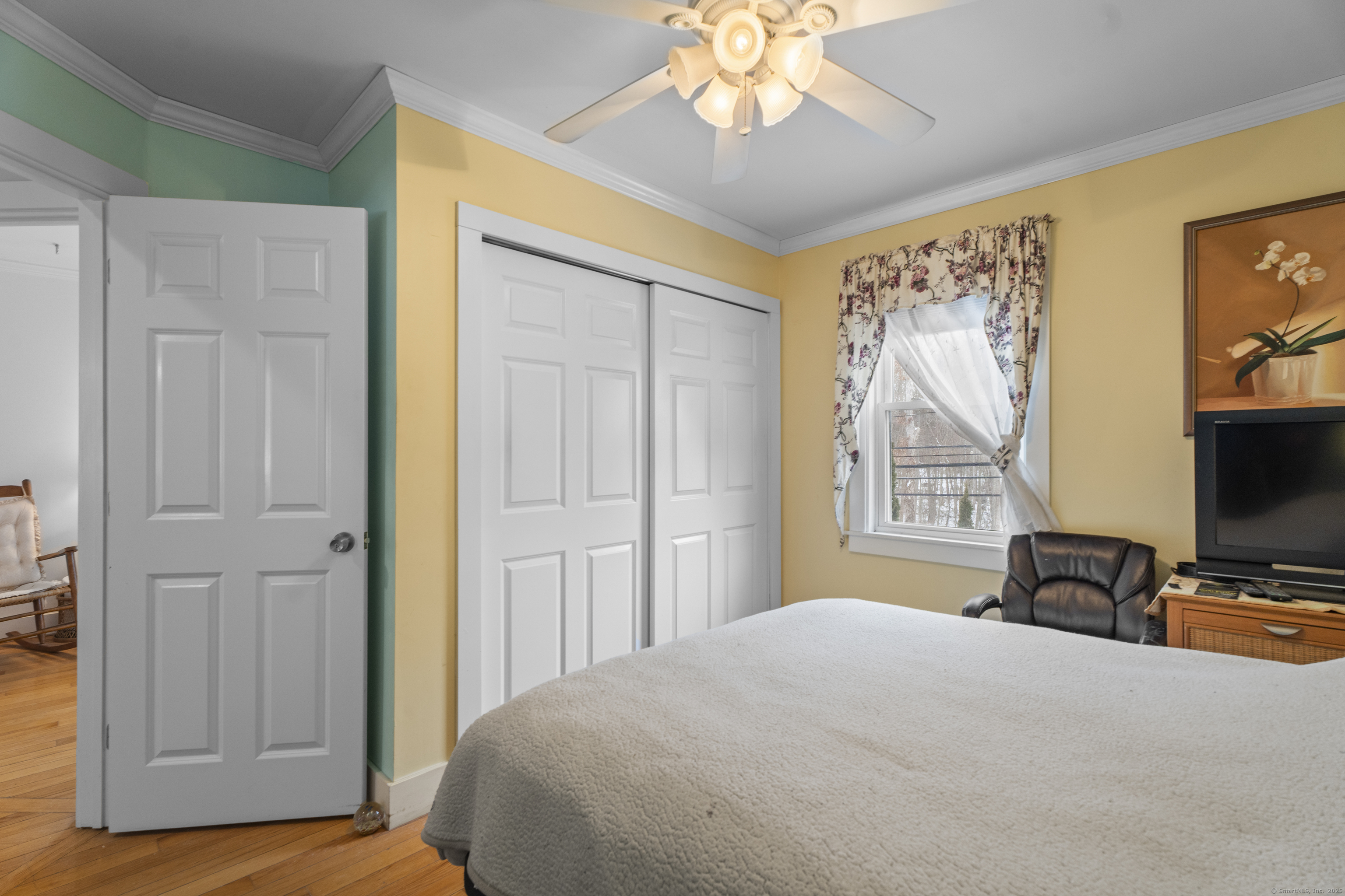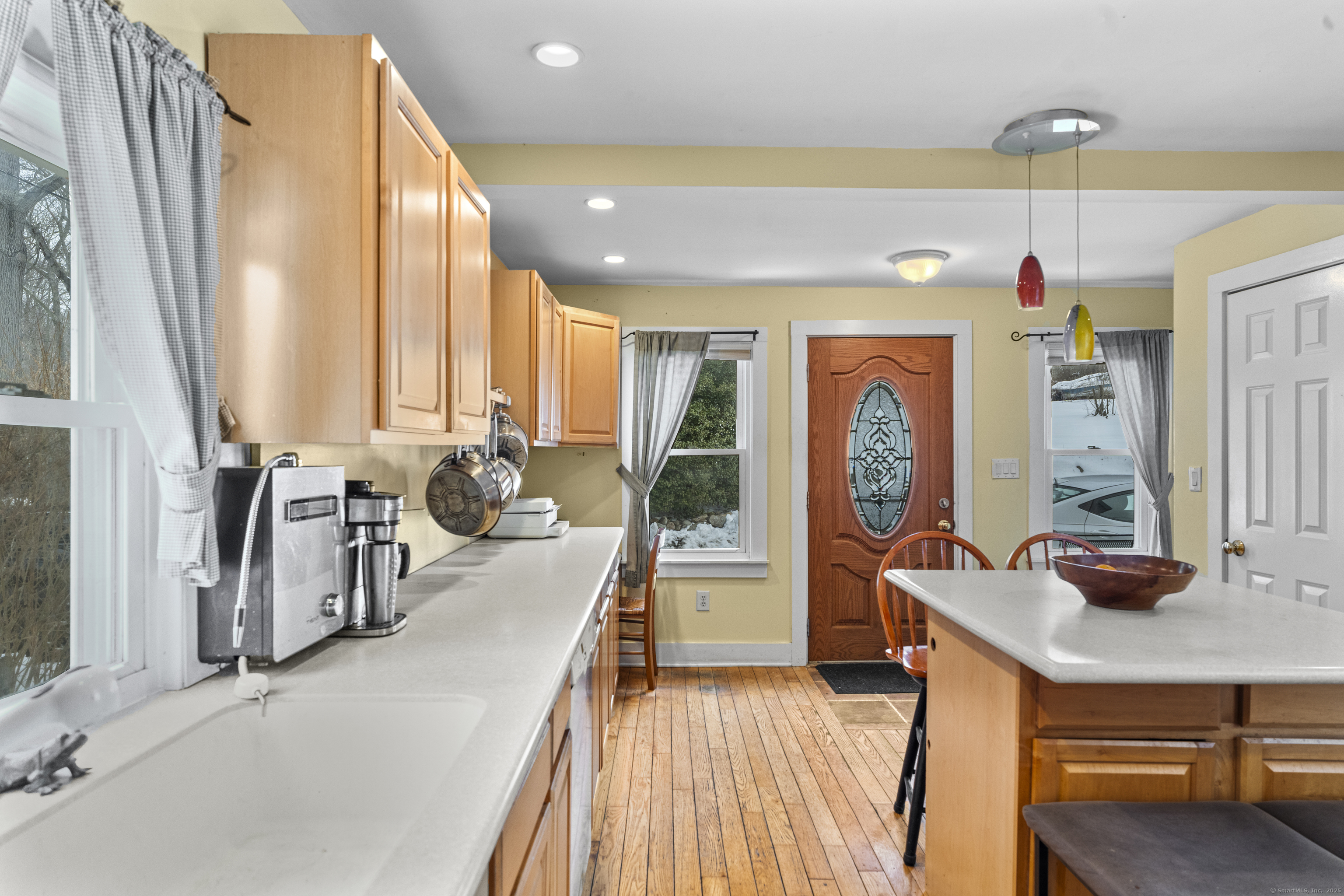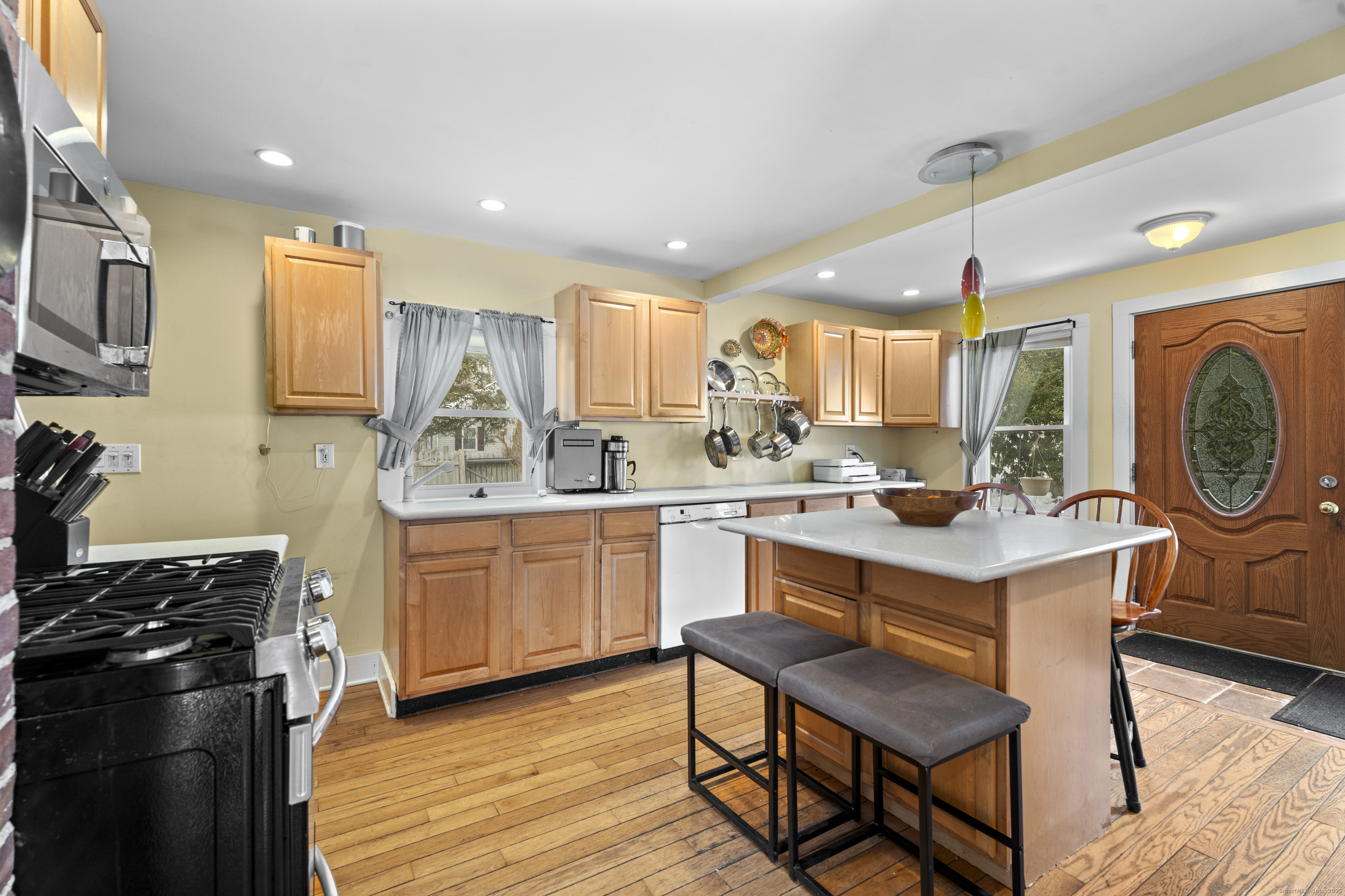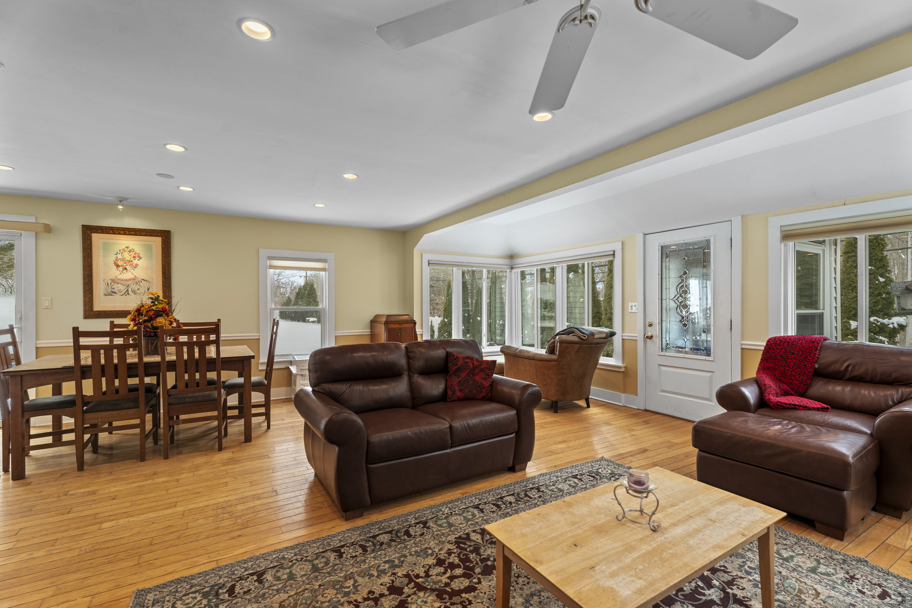 Welcome to this 3-bedroom home, ideally located in the heart of Madison-close to everything you need! As you enter, you are greeted by an open floor plan with hardwood floors throughout. The kitchen features a gas stove and center island and flows effortlessly into the dining area, which boasts built-in cabinetry perfect for storing your entertaining essentials. The family room, bathed in natural light thanks to its walls of windows surrounding the front door vestibule, creates a warm, inviting space. Sliding doors lead out to a low-maintenance Trex deck and hot tub, perfect for relaxing or entertaining. The main level also includes a convenient powder room and laundry area for added practicality. Upstairs, you'll find three comfortable bedrooms, each offering plenty of space, as well as a full bathroom complete with a soft-jetted air tub and separate tiled shower-ideal for unwinding after a long day. This home is equipped with natural gas heating, ensuring comfort and efficiency year-round. Additionally, with solar panels installed on a roof that is only 2 years old, this home offers enhanced energy efficiency. Set on a generous 1.5-acre corner lot, the property offers incredible potential, with a privacy fence and mature perennial trees that create a tranquil, park-like atmosphere. Additionally, an outbuilding on the property provides ample storage, and the driveway off Hunter's Trail offers easy access. Just a minute from I-95, this location is a commuter's dream.