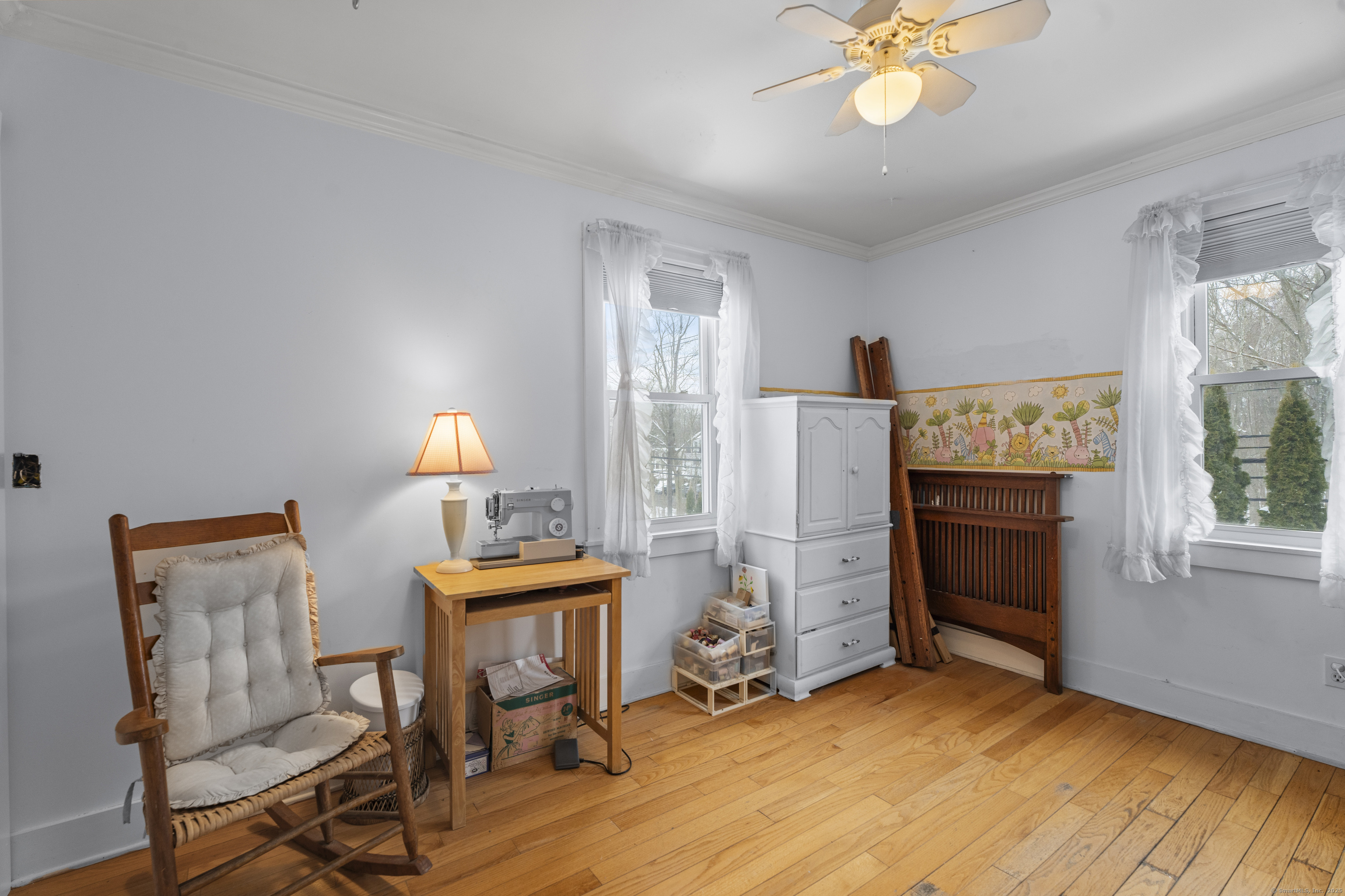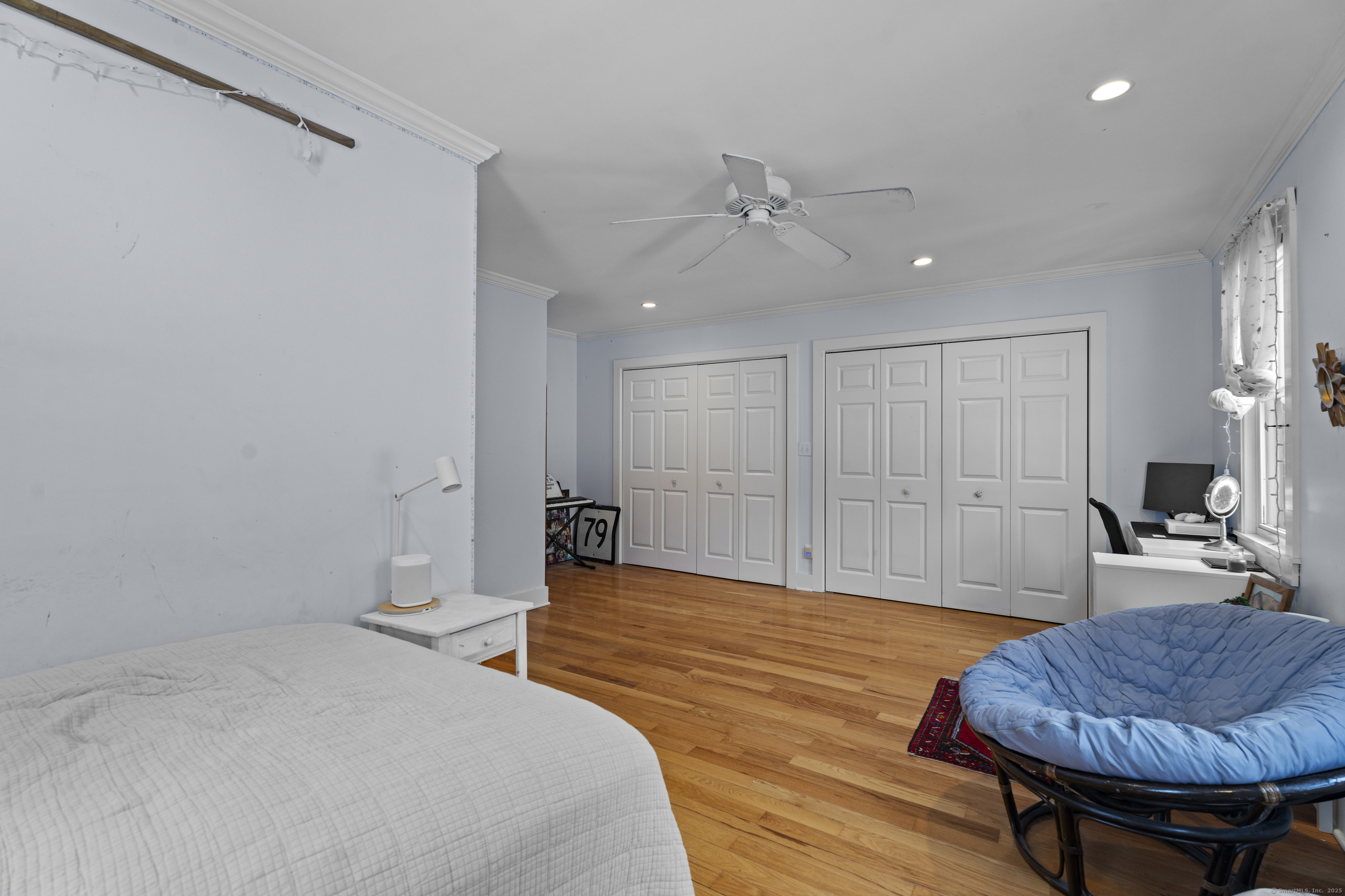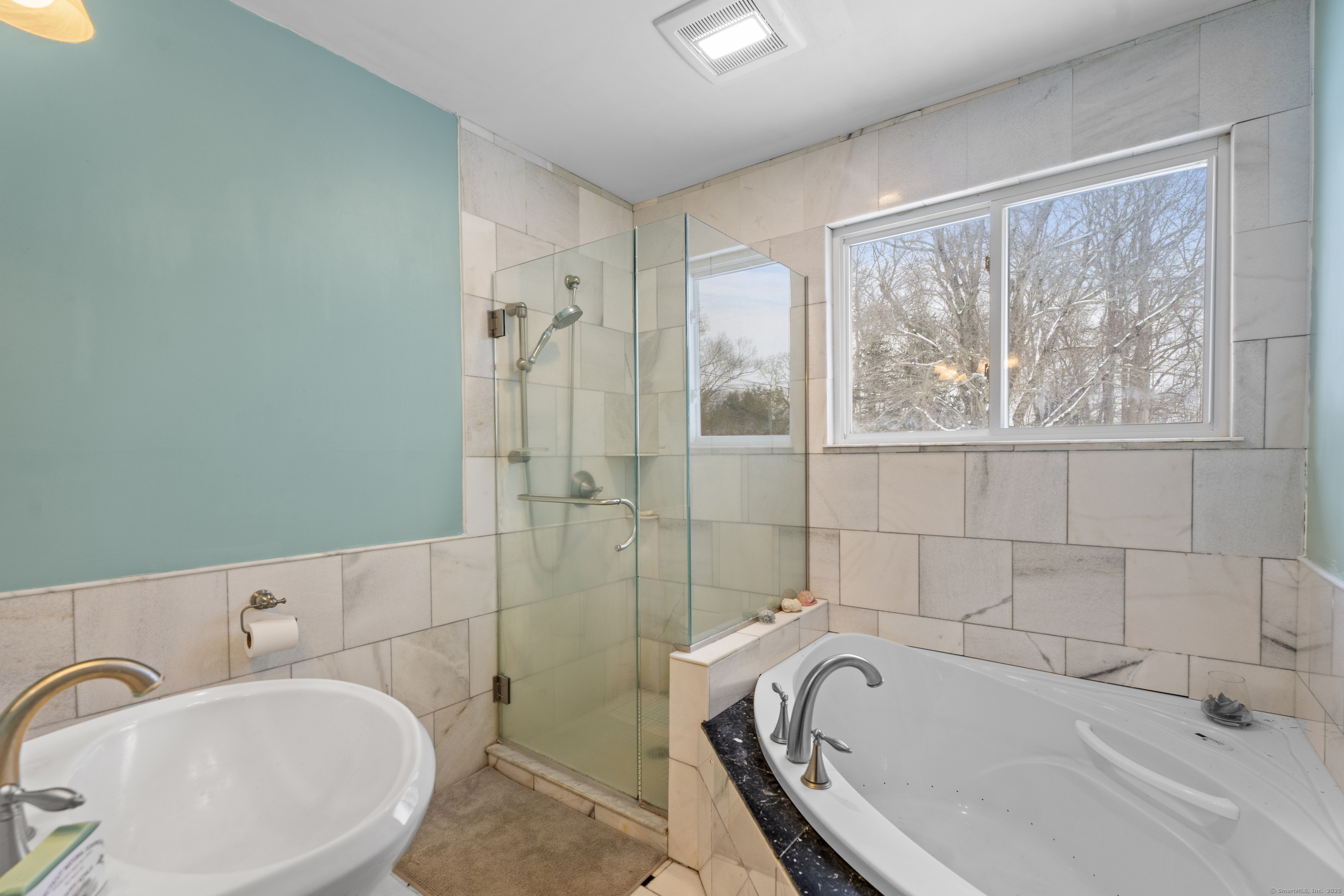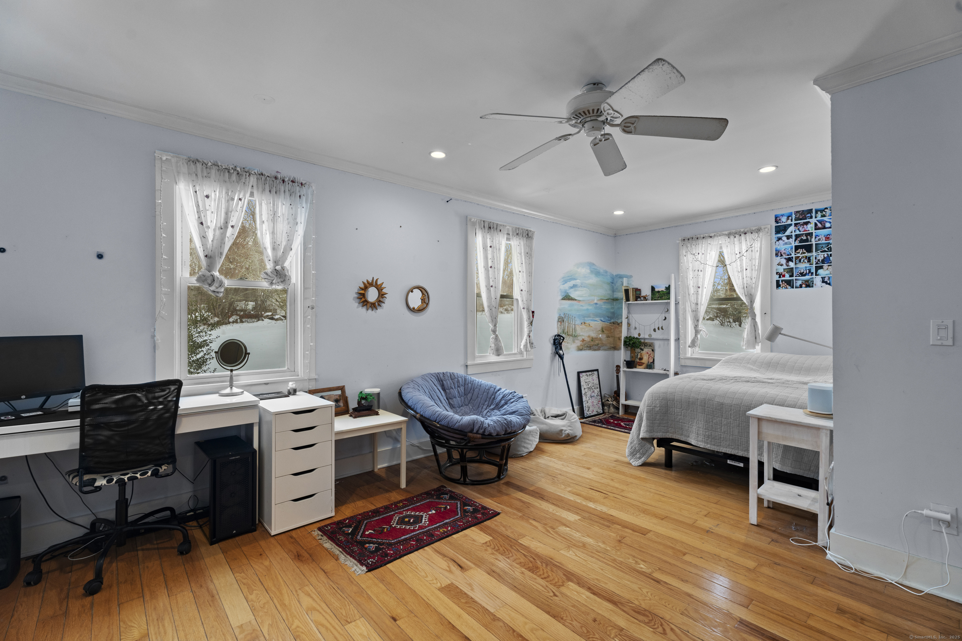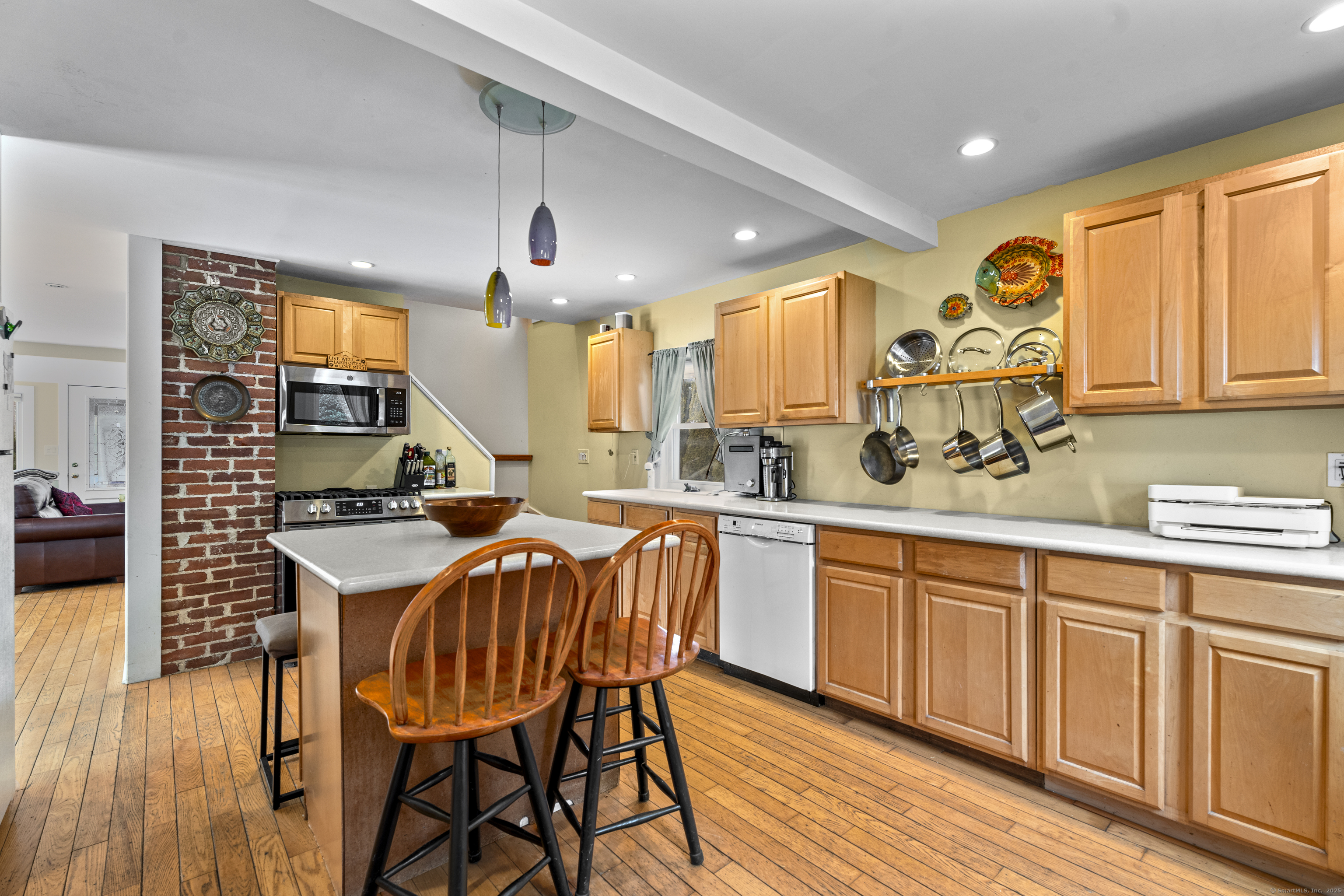 Welcome to this 3-bedroom home, ideally located in the heart of Madison-close to everything you need! As you enter, you are greeted by an open floor plan with hardwood floors throughout. The kitchen features a gas stove and center island and flows effortlessly into the dining area, which boasts built-in cabinetry perfect for storing your entertaining essentials. The family room, bathed in natural light thanks to its walls of windows surrounding the front door vestibule, creates a warm, inviting space. Sliding doors lead out to a low-maintenance Trex deck and hot tub, perfect for relaxing or entertaining. The main level also includes a convenient powder room and laundry area for added practicality. Upstairs, you'll find three comfortable bedrooms, each offering plenty of space, as well as a full bathroom complete with a soft-jetted air tub and separate tiled shower-ideal for unwinding after a long day. This home is equipped with natural gas heating, ensuring comfort and efficiency year-round. Additionally, with solar panels installed on a roof that is only 2 years old, this home offers enhanced energy efficiency. Set on a generous 1.5-acre corner lot, the property offers incredible potential, with a privacy fence and mature perennial trees that create a tranquil, park-like atmosphere. Additionally, an outbuilding on the property provides ample storage, and the driveway off Hunter's Trail offers easy access. Just a minute from I-95, this location is a commuter's dream.