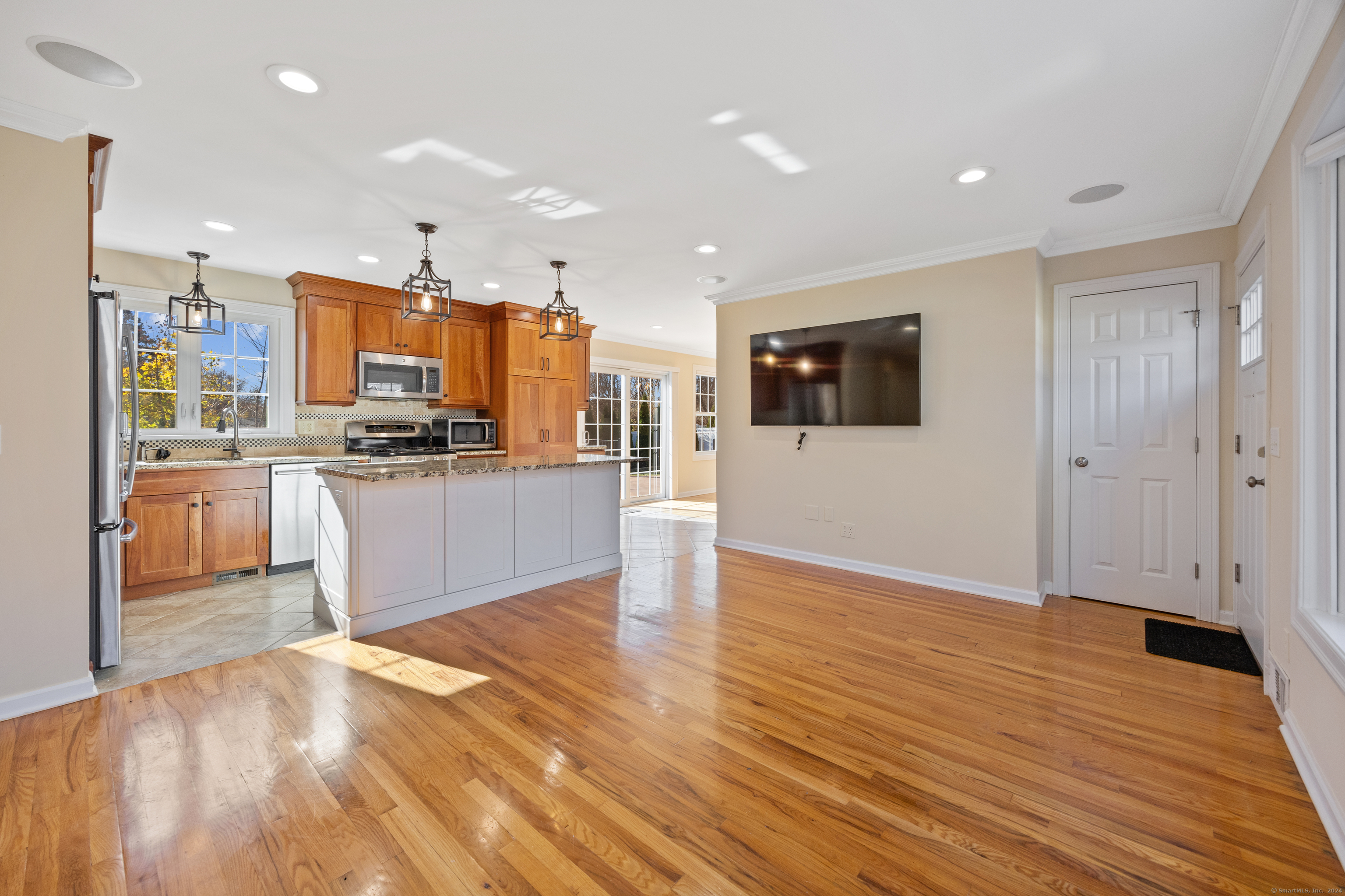 This totally remodeled 4 bedroom ranch has so much to give! a very versatile floor plan. The newer kitchen boasts upgraded cabinetry, granite countertops and Stainless Steel appliances. The family room/dining area has a cozy wood burning fireplace and sliders to an oversized deck. Also, a newly built mudroom opens to the family room. Hardwood floors throughout, including all 4 bedrooms. The primary bedroom, which features a walk-in closet & full bathroom suite, was recently added in 2013. Backyard is completely fenced in and features a 46' x 15' Timbertech deck. The Farmington Linear Trail is within walking distance, as well as the newly opened Ball & Socket Arts Center. The home interior has just been totally painted, professionally cleaned and power washed vinyl siding.