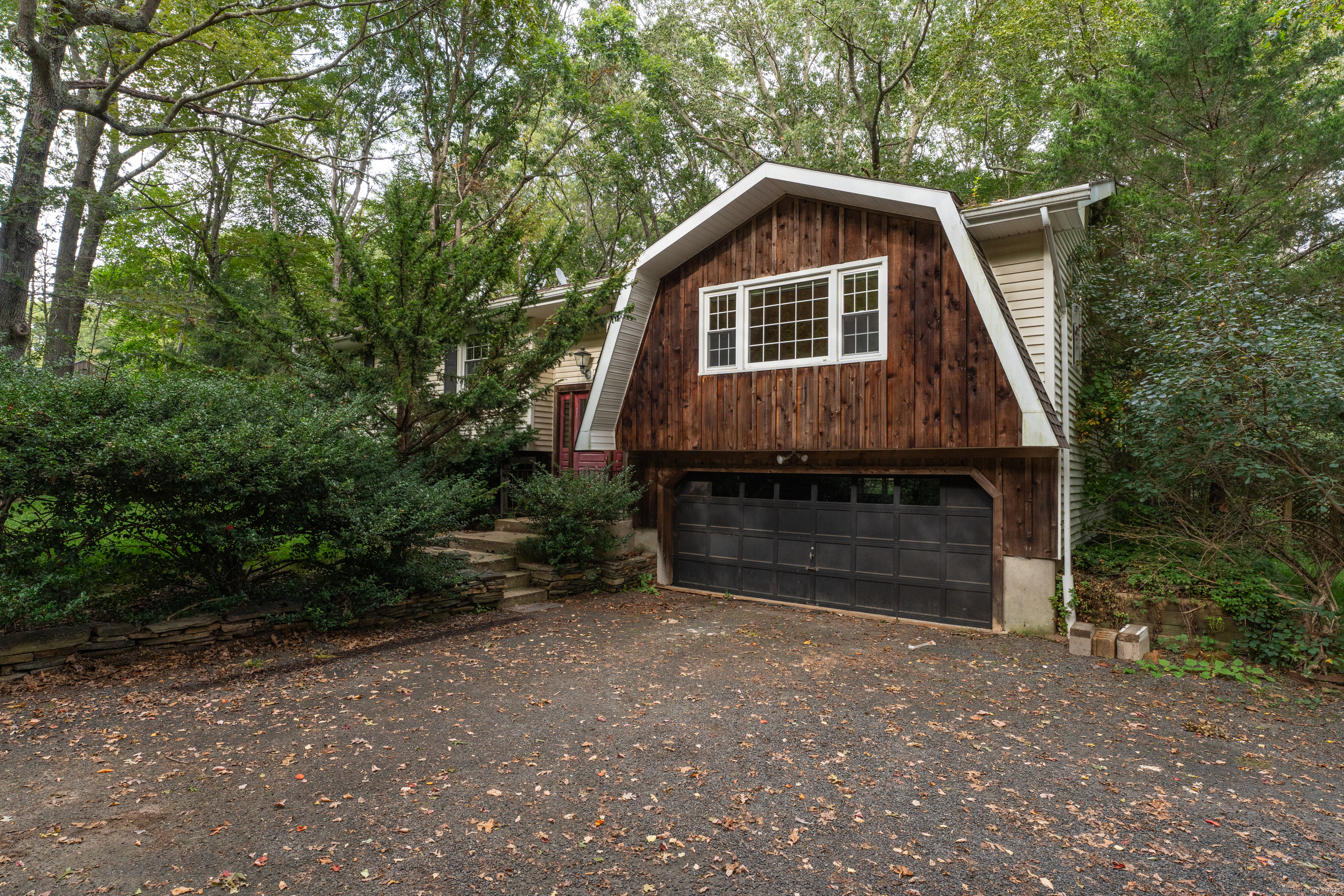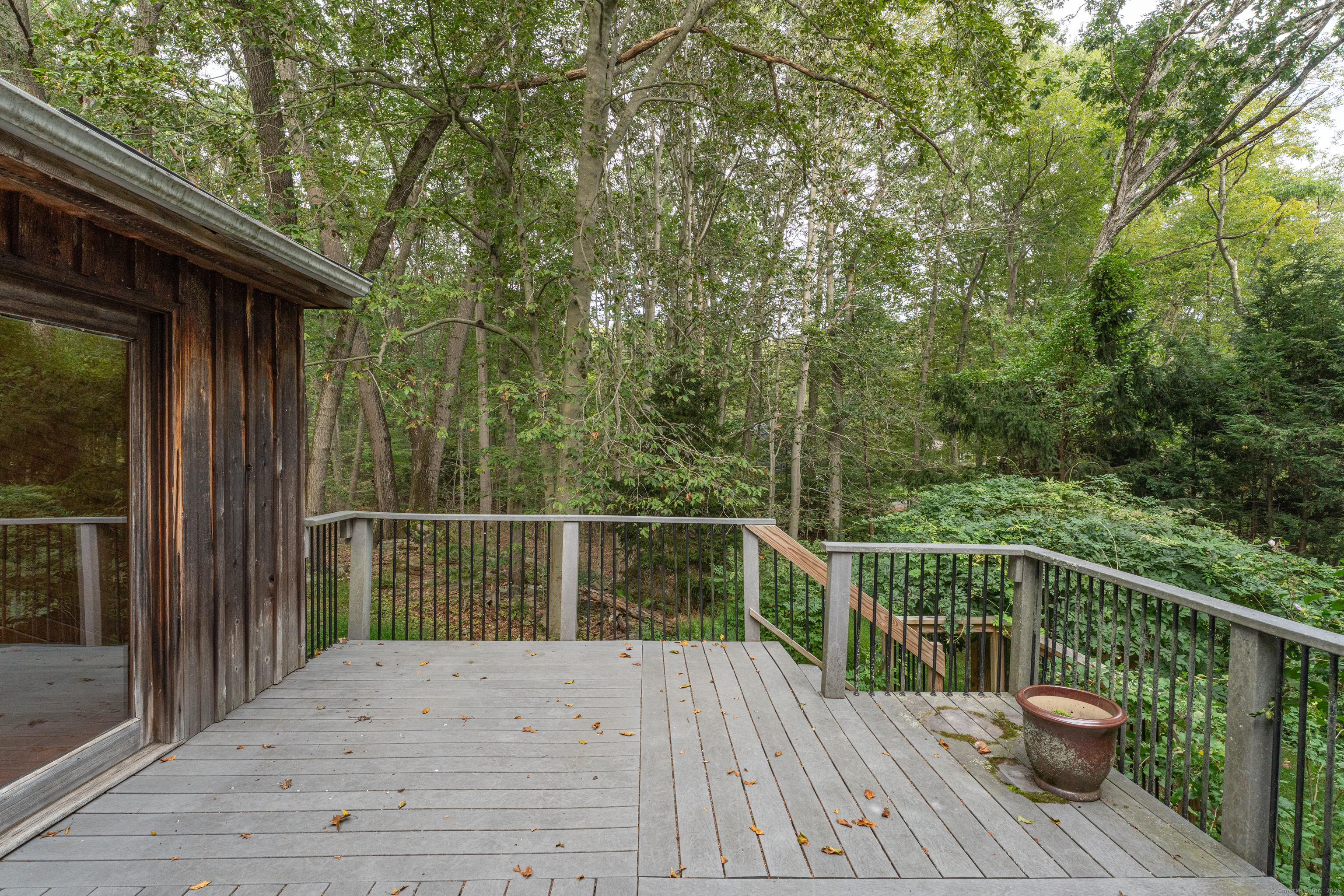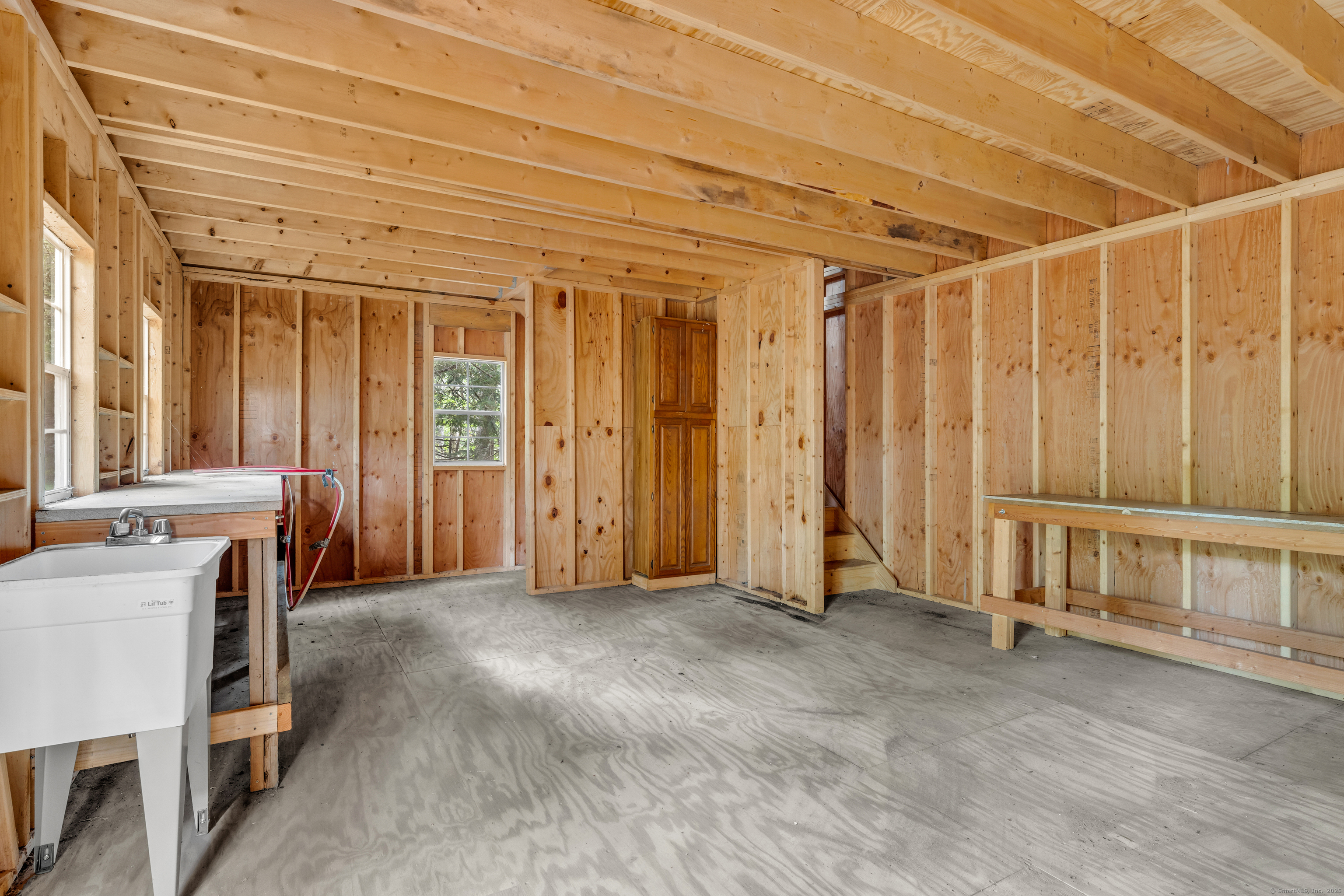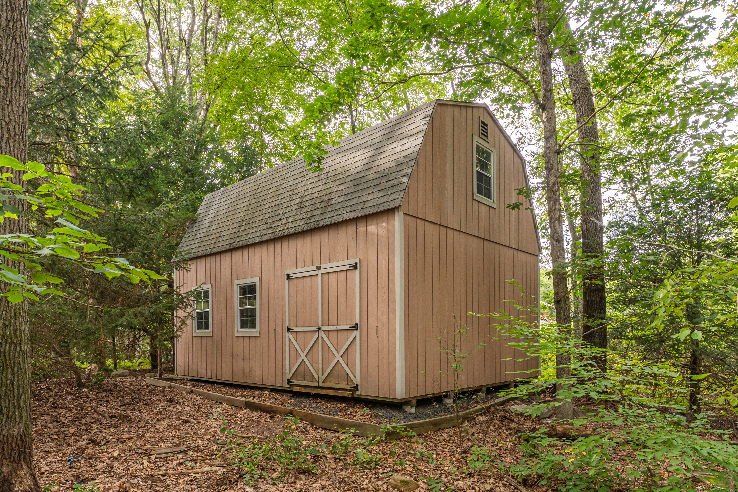 A separate outbuilding with stairs leading to a second-level loft presents endless options for a studio, office, or workshop.