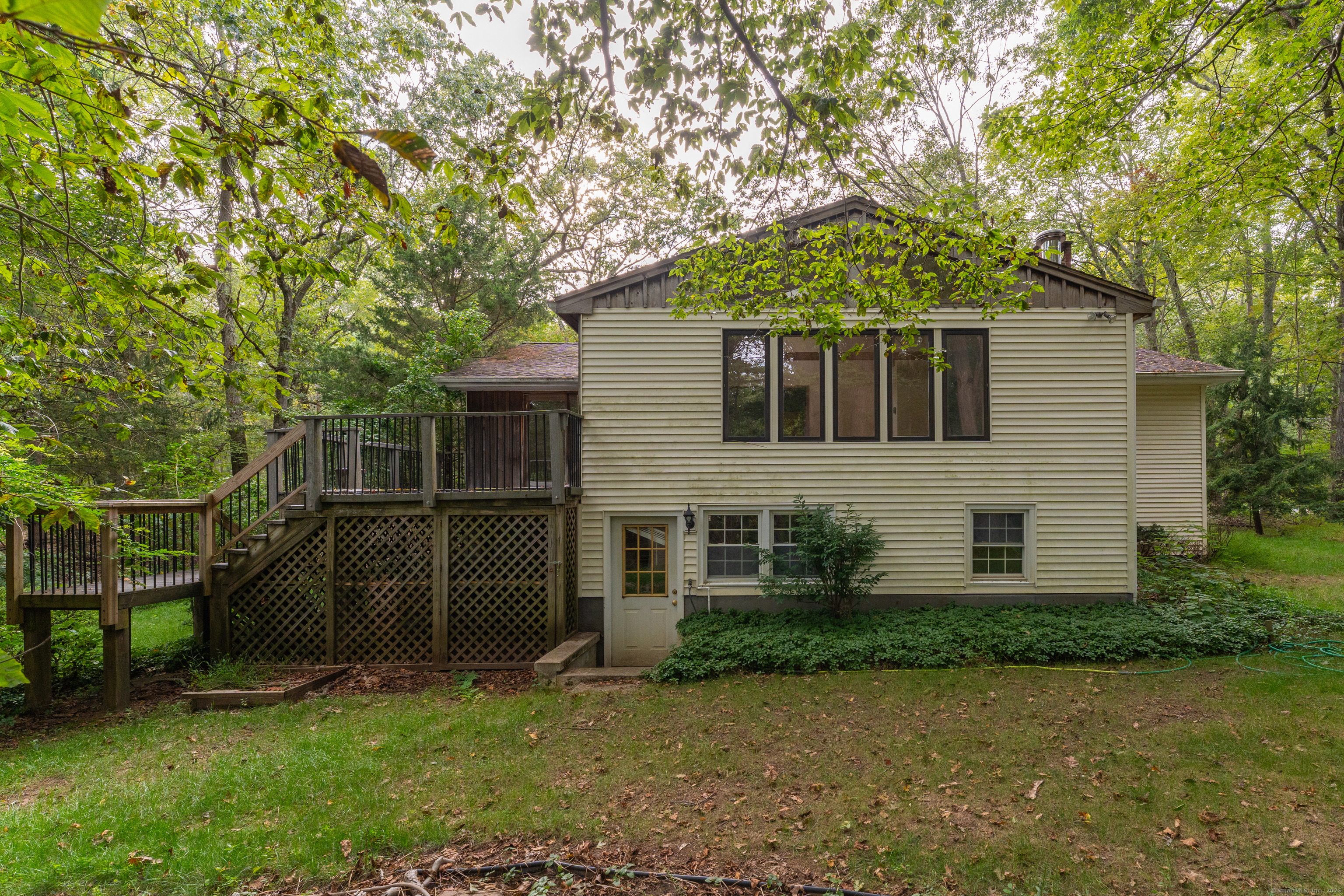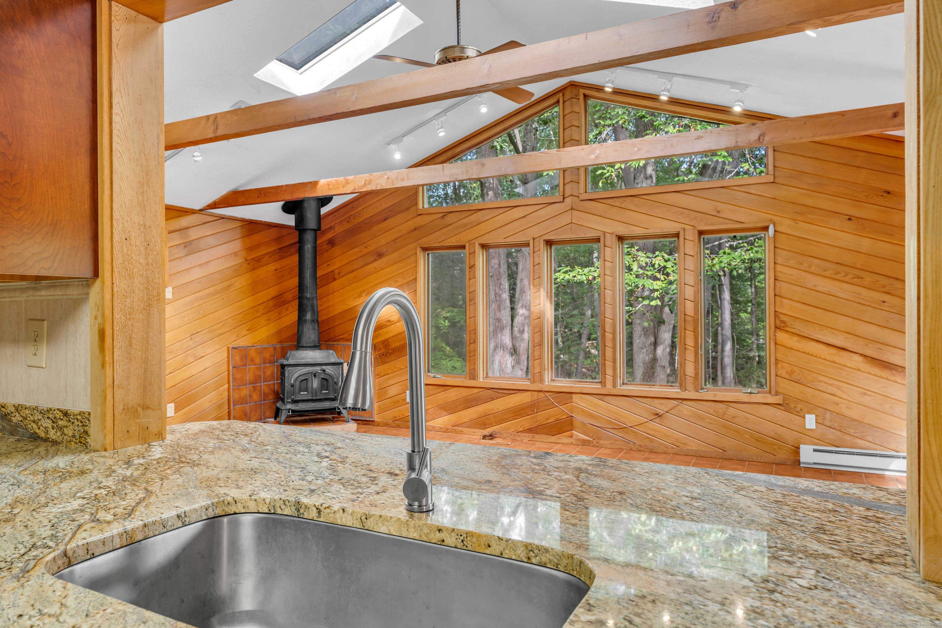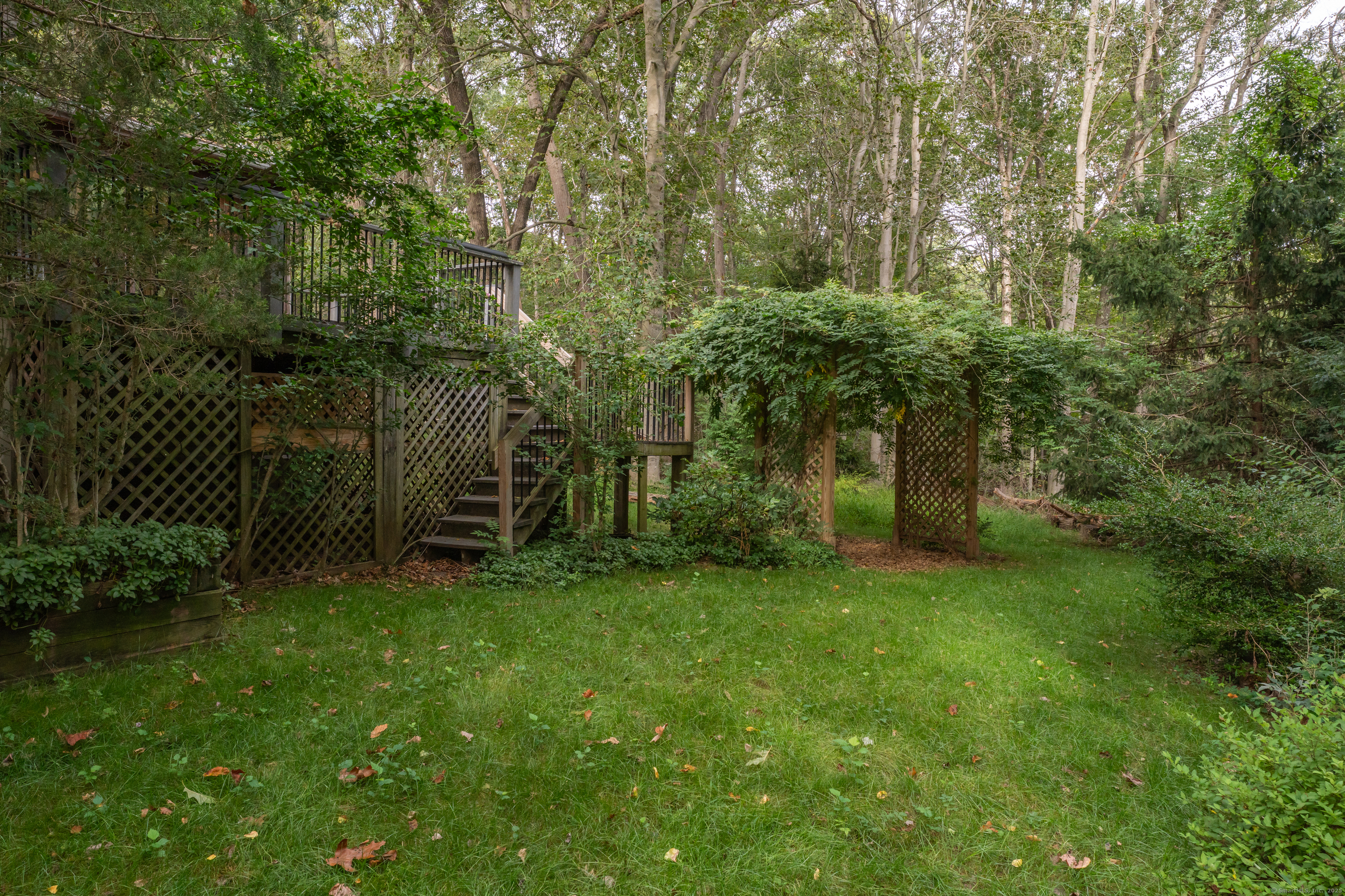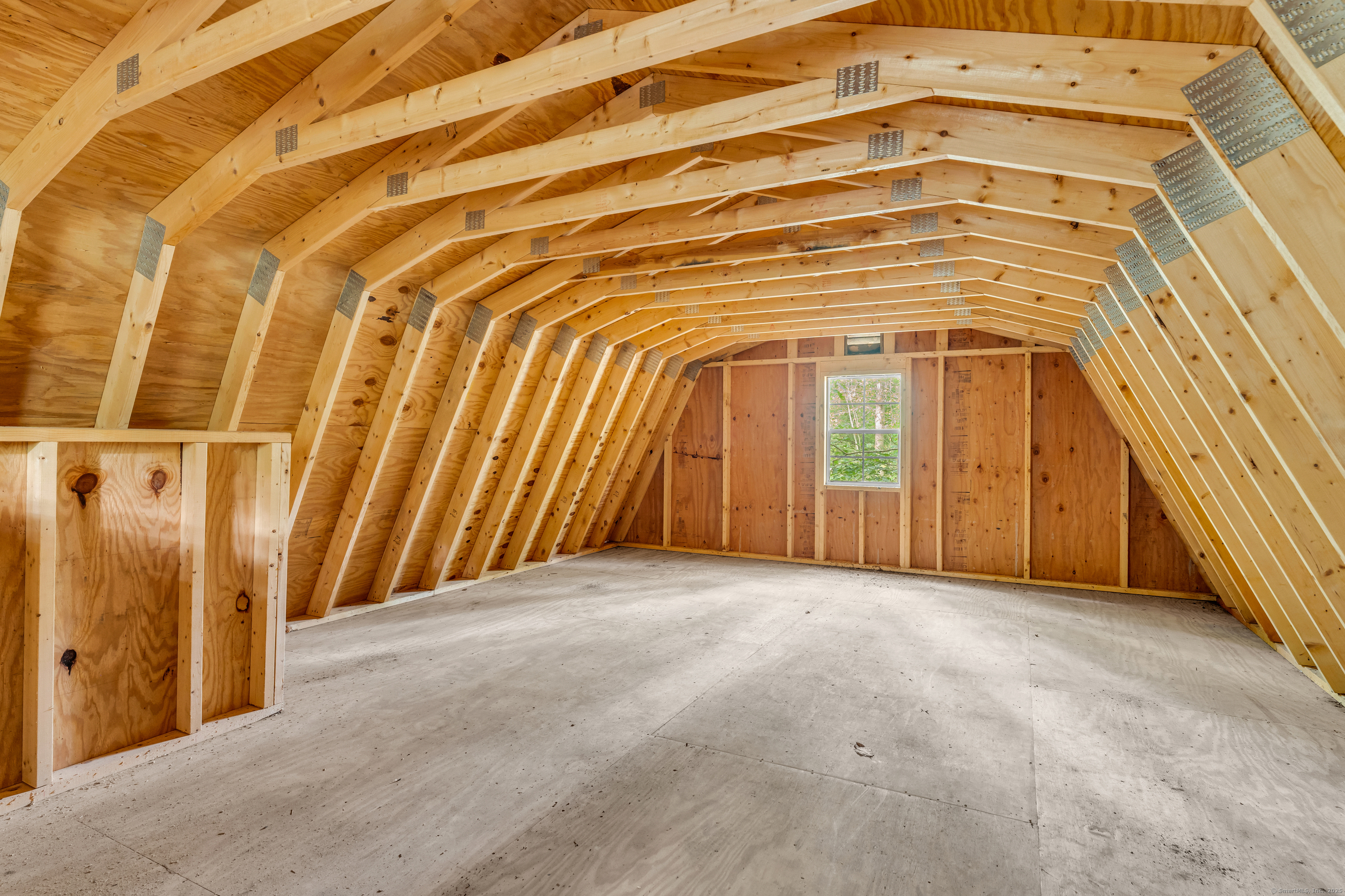 A separate outbuilding with stairs leading to a second-level loft presents endless options for a studio, office, or workshop.